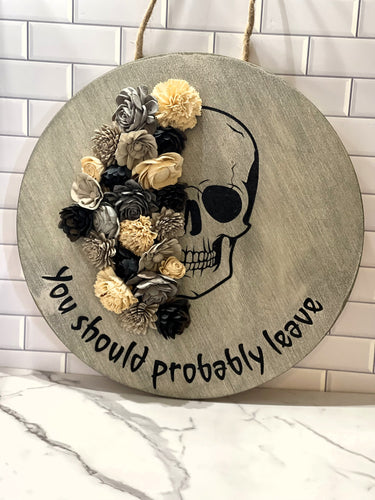 Embrace the cozy charm of autumn with this handcrafted wooden porch sign, designed to bring a touch of spooky decor and fall vibes to your home. Featuring personalized wooden flowers and a hauntingly beautiful design, this piece blends the warmth of fall decor with the thrill of Halloween. Perfect for your porch or doorway, it invites guests to enjoy the season's spirit with a unique twist.